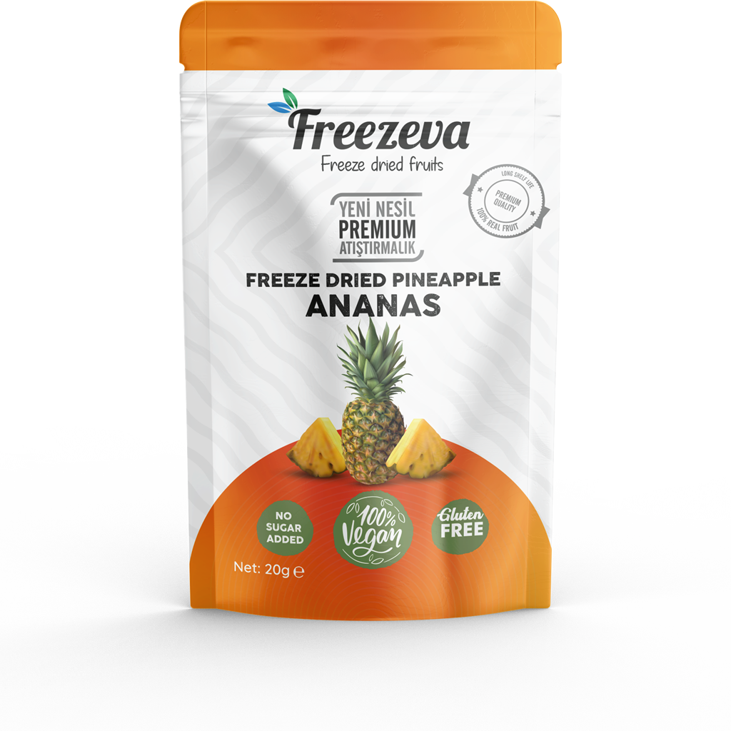 Fresh pineapples are frozen right after harvest; then dried at low temperature and low pressure as water is removed. This preserves their tropical aroma, natural color, and refreshing scent. A healthy snack with no additives, no preservatives, and no added sugar. You can confidently enjoy it in your gym bag, at school, in the office, or in various recipes.