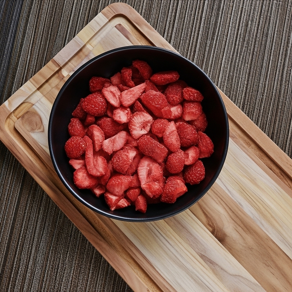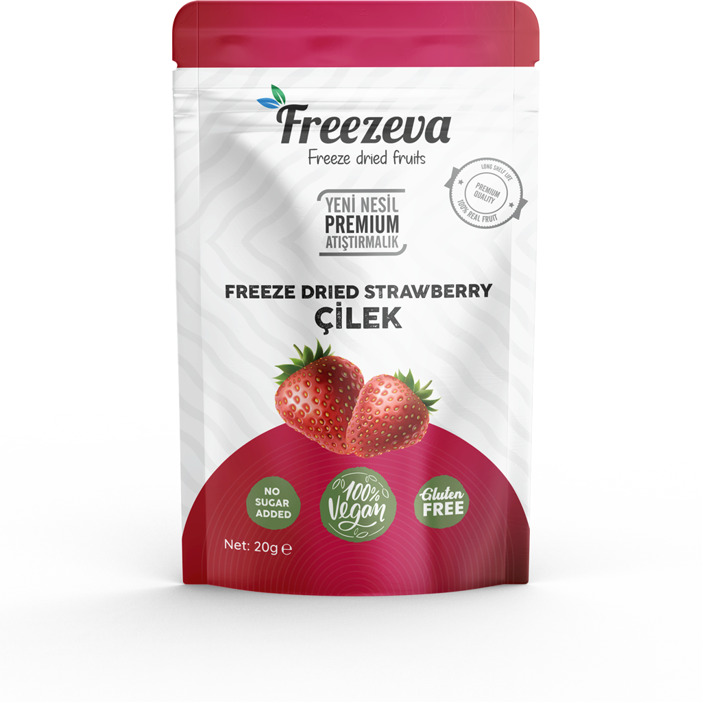 Fresh strawberries are frozen immediately after harvest and carefully dried using low temperature and pressure. This process preserves their natural color, aroma, and flavor. They are healthy snacks with no additives, preservatives, or added sugar. Perfect for the gym bag, school, office, or in your favorite recipes.