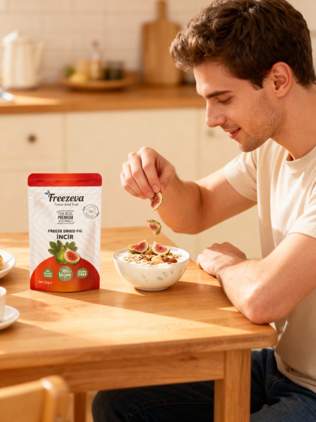 Doğallığı ve yoğun aromasıyla bilinen incir, dalından toplandığı anda dondurularak özel yöntemlerle kurutulur. Bu sayede eşsiz tatlılığı, yumuşak dokusu ve besleyici yapısı korunur. Katkısız ve koruyucusuz olan freeze-dried incir; kahvaltı tabaklarınıza, atıştırmalık molalarınıza ve tatlı tariflerinize doğal bir şıklık katar. Tek lokmada hem enerjinizi yükseltir hem de doğanın saf lezzetini yaşatır.