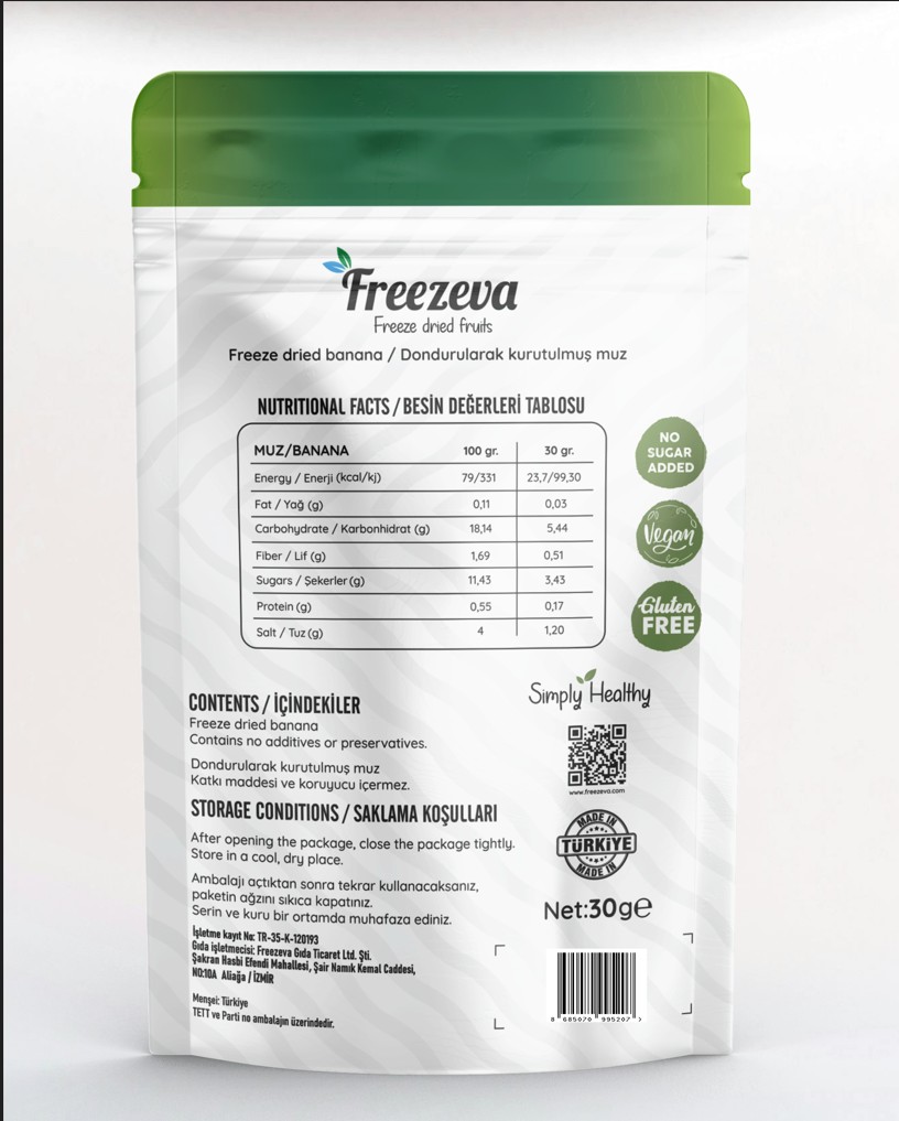 Freezeva Dondurularak Kurutulmuş Muz 30 gr